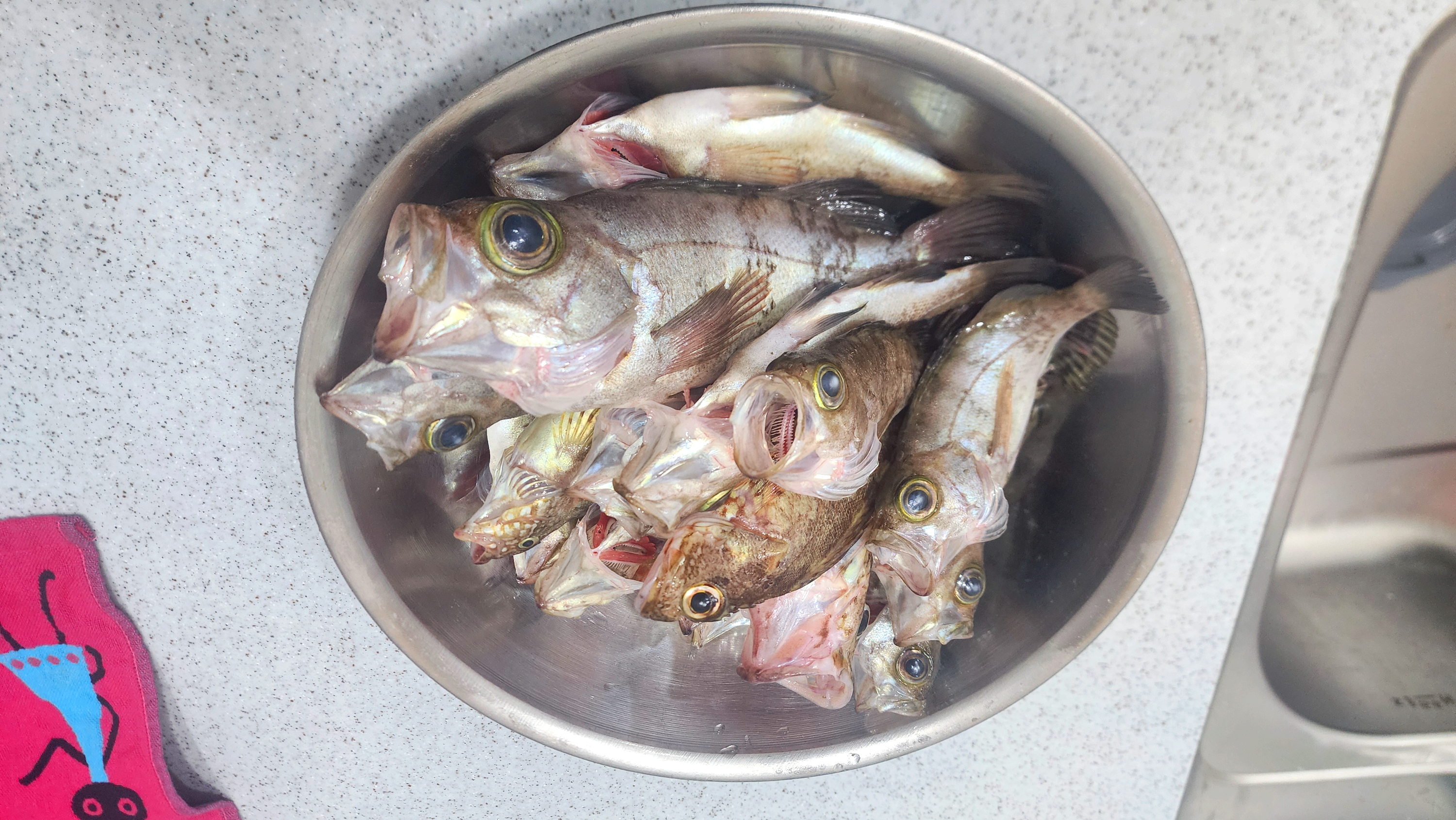 잘 손질한 볼락 몇마리와 서더리 좀 넣어주고