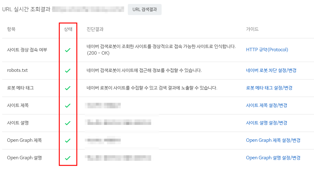 사이트 간단 체크 도구는 사이트 제목, 설명문, 로봇 차단 여부 등 사이트 기본적인 검색 최적화 정보를 조회할 수 있습니다. URL을 호스트 단위(예, http://www.) 형태로 입력해 주세요.