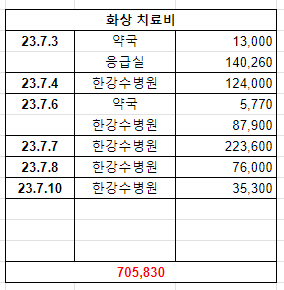23.7.7 화상흉터 치료를 받기 위해 3차 한강수병원 방문