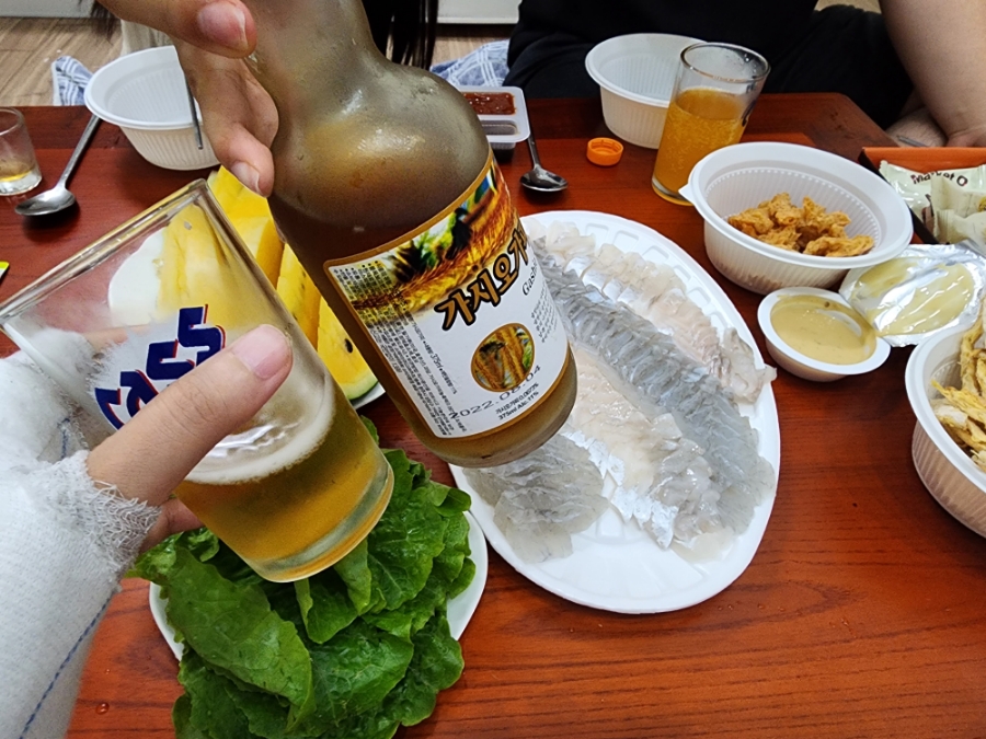 안면도 수산시장에서 농어회도 포장해 왔는데